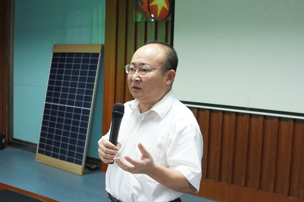 五星公司董事長胡廣良首先與大家分享了國家能源局下發(fā)的《關(guān)于報送整縣(市、區(qū))屋頂分布式光伏開發(fā)試點方案的通知》文件精神。胡董告訴大家,國家能源局文件中已明確,黨政機關(guān)建筑屋頂總面積可安裝光伏發(fā)電比例不低于50%;學校、醫(yī)院、村委會等公共建筑屋頂總面積可安裝光伏發(fā)電比例不低于40%;工商業(yè)廠房屋頂總面積可安裝光伏發(fā)電比例不低于30%;農(nóng)村居民屋頂總面積可安裝光伏發(fā)電比例不低于20%。光伏迎來了歷史性的大發(fā)展機遇,面對新的機遇和挑戰(zhàn),我們應牢牢抓住機遇,迎難而上,憑借自身的技術(shù)、生產(chǎn)、工程、服務優(yōu)勢,投資建設出更多、更優(yōu)質(zhì)的光伏電站。
