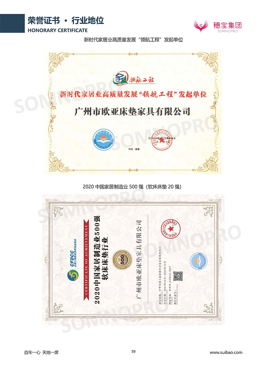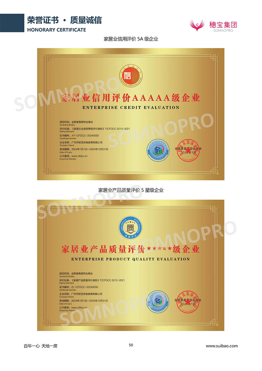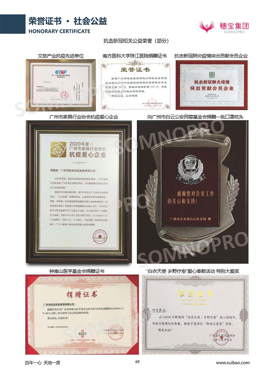 半個世紀(jì)的付出,穗寶集團(tuán)在深度睡眠領(lǐng)域收獲非凡成就,贏得業(yè)界與社會的一致贊譽(yù)。作為大家居行業(yè)的品質(zhì)倡導(dǎo)者,穗寶集團(tuán)不斷創(chuàng)新,豐富品牌實力,致力推動中國床墊產(chǎn)業(yè)發(fā)展。至今,穗寶集團(tuán)旗下?lián)碛卸鄠€來自世界各地的優(yōu)質(zhì)品牌,包括:穗寶、詩貝艾爾、百納璐詩、睡客小鎮(zhèn)、Mr.Z早先生等;此外,穗寶集團(tuán)從世界各地甄選適合不同消費(fèi)者的優(yōu)質(zhì)睡眠產(chǎn)品,定制屬于您的睡眠空間。如今,穗寶集團(tuán)形成以研發(fā)、生產(chǎn)和銷售床墊為主營業(yè)務(wù),涉及家具、家居裝飾、酒店配套等多項業(yè)務(wù)的企業(yè)群體。