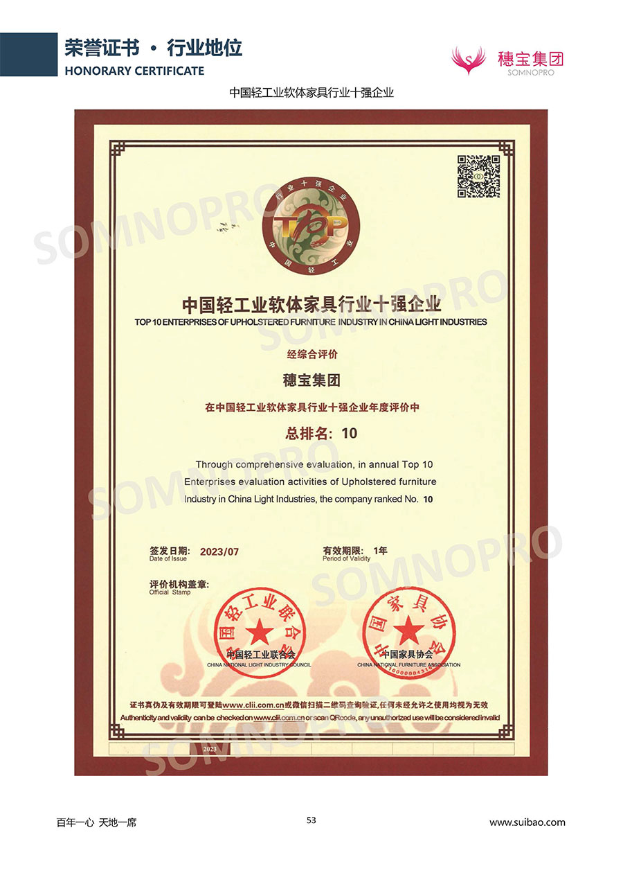 自1971年獨立研發(fā)生產(chǎn)出專屬國人的彈簧床墊,穗寶關(guān)于優(yōu)質(zhì)深度睡眠的研究已有半個世紀(jì)的歷史。穗寶一直專注床墊,專注中國消費(fèi)者的睡眠研究,針對中國人特點進(jìn)行優(yōu)化創(chuàng)新,不斷提升國人的睡眠體驗,只為成就每個晚上8小時的優(yōu)質(zhì)深度睡眠。憑借不斷革新的研發(fā)科技和深受消費(fèi)者信賴的產(chǎn)品品質(zhì),穗寶集團(tuán)旗下品牌和產(chǎn)品屢獲國內(nèi)外大獎,連續(xù)20年榮膺中國500最具價值品牌,品牌價值高達(dá)302.89億元。