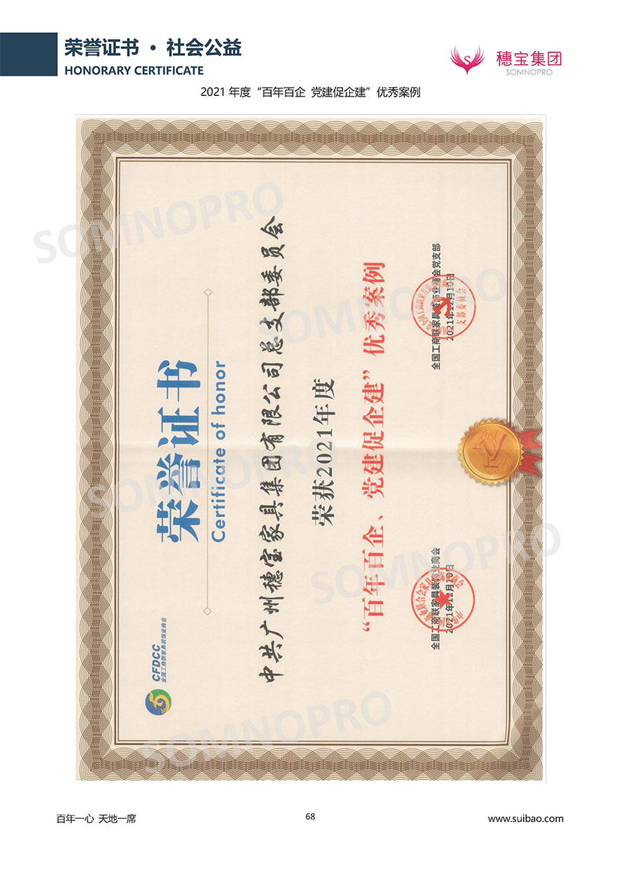 本著高品質(zhì)、高效率、重管理的原則,穗寶已通過ISO9001質(zhì)量管理體系認(rèn)證證書、ISO14001環(huán)境管理體系認(rèn)證證書、ISO45001職業(yè)健康安全管理體系認(rèn)證證書、中國環(huán)境標(biāo)志產(chǎn)品認(rèn)證證書、家居綠色環(huán)保領(lǐng)跑品牌、綠色正品家居品牌、企業(yè)標(biāo)準(zhǔn)“綠色領(lǐng)跑者”證書、CMS測量管理體系證書、CMS測量管理體系證書附件、廣東省“守信用重合同”企業(yè)、廣州歐亞-納稅信用A級納稅人(連續(xù)5年:2018-2022)、2024年中國500最具價值品牌,品牌價值高達(dá)302.89億元、廣東高價值商標(biāo)品牌(穗寶)、廣東省重點商標(biāo)保護(hù)名錄納入證明、廣州市勞動關(guān)系和諧企業(yè)AA級。穗寶自創(chuàng)立以來,不斷致力于新產(chǎn)品的設(shè)計與研發(fā),多次在國內(nèi)家具展會屢獲獎項,產(chǎn)品暢銷國內(nèi)外,深受客戶一致好評。