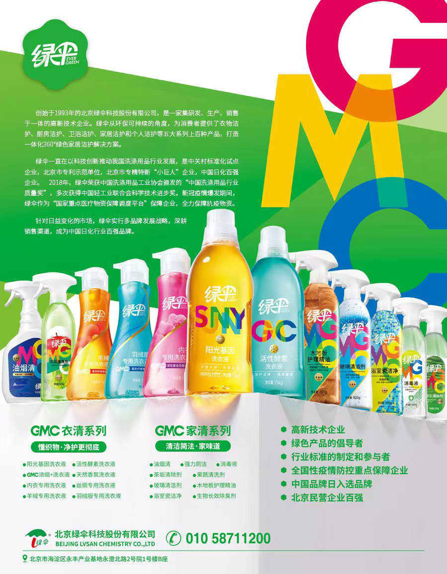 綠傘是高新技術(shù)企業(yè)、行業(yè)標(biāo)準(zhǔn)的起草者和制定者、綠色產(chǎn)品倡導(dǎo)者,是北京市專精特新“小巨人”企業(yè)、中國日化百強(qiáng)企業(yè)、北京市企業(yè)技術(shù)中心,北京市專利示范單位、中關(guān)村標(biāo)準(zhǔn)化試點企業(yè)。經(jīng)過近30年的發(fā)展,綠傘已經(jīng)成為中國洗化行業(yè)深具影響力的企業(yè)和消費者信賴的品牌。