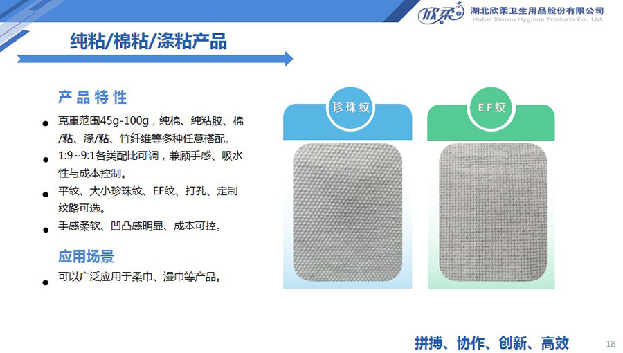 欣柔是以一次性醫(yī)衛(wèi)及生活用非織造材料為主導(dǎo),同時(shí)集生產(chǎn)銷售醫(yī)衛(wèi)用脫脂纖維和擦拭類終端產(chǎn)品的高新技術(shù)企業(yè),欣柔秉承“人才為本,科技領(lǐng)先,用戶至上”的經(jīng)營理念,努力打造成為一家以研發(fā)創(chuàng)新為驅(qū)動(dòng)力,以功能型、差異化產(chǎn)品為牽引力的專業(yè)醫(yī)衛(wèi)用非織造材料供應(yīng)商及生活用品提供商。