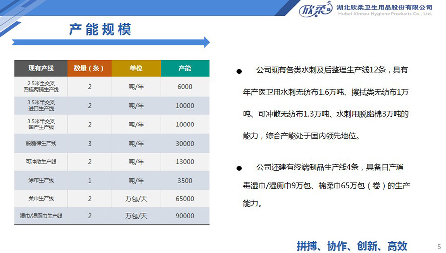 欣柔還建有終端制品生產(chǎn)線4條,具備日產(chǎn)消毒濕巾/濕廁巾9萬包、棉柔巾65萬包(卷)的生產(chǎn)能力。