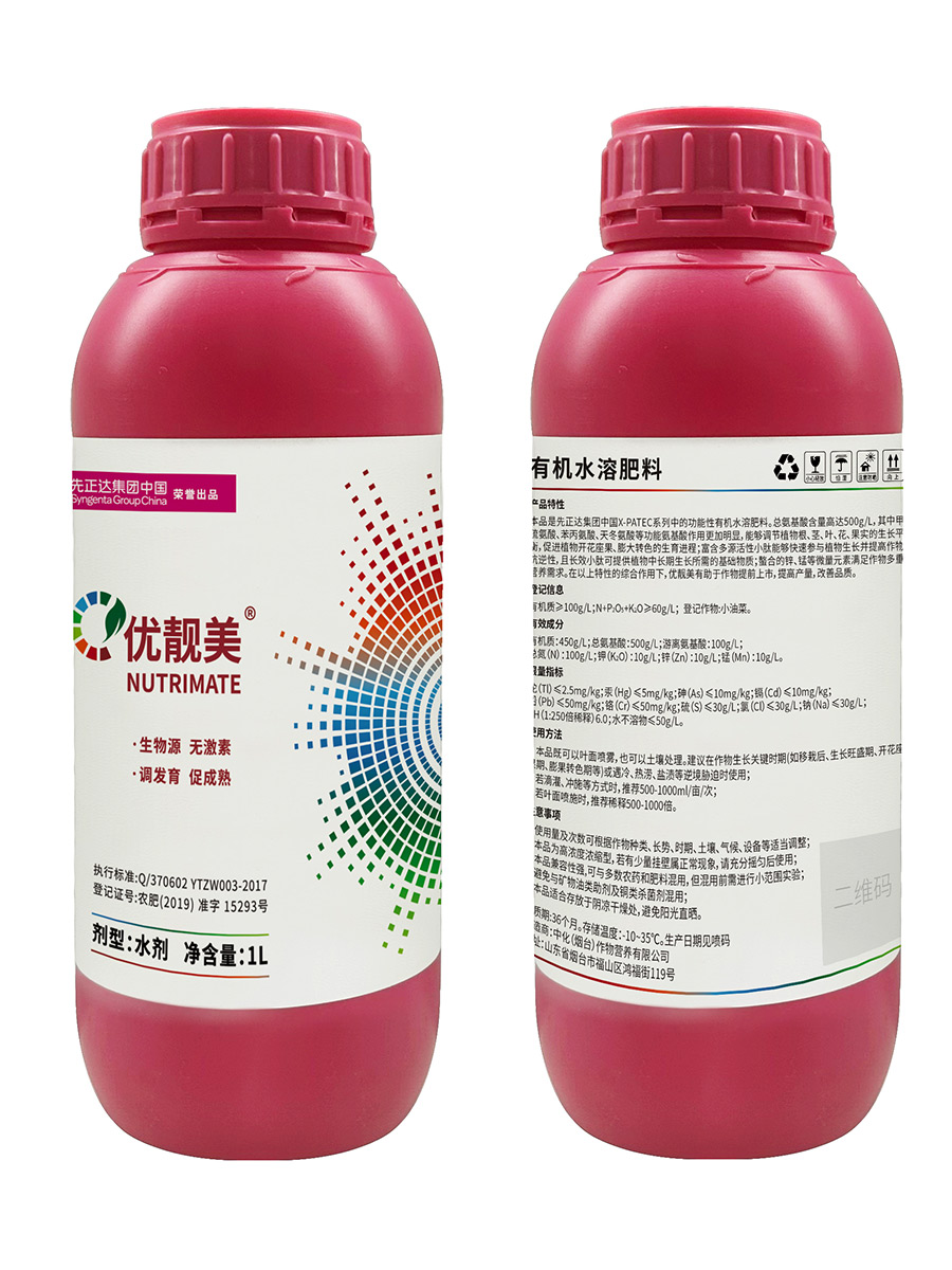 優(yōu)靚美是先正達(dá)集團(tuán)中國(guó)X-PATec系列中的功能性有機(jī)水溶肥料??偘被岷扛哌_(dá)500g/L,能夠調(diào)節(jié)植物根、莖、葉、花、果實(shí)的生長(zhǎng)平衡,促進(jìn)植物開(kāi)花座果、膨大轉(zhuǎn)色的生育進(jìn)程;提高作物抗逆性,滿(mǎn)足作物多重營(yíng)養(yǎng)需求。有助于作物提前上市,提高產(chǎn)量,改善品質(zhì)。