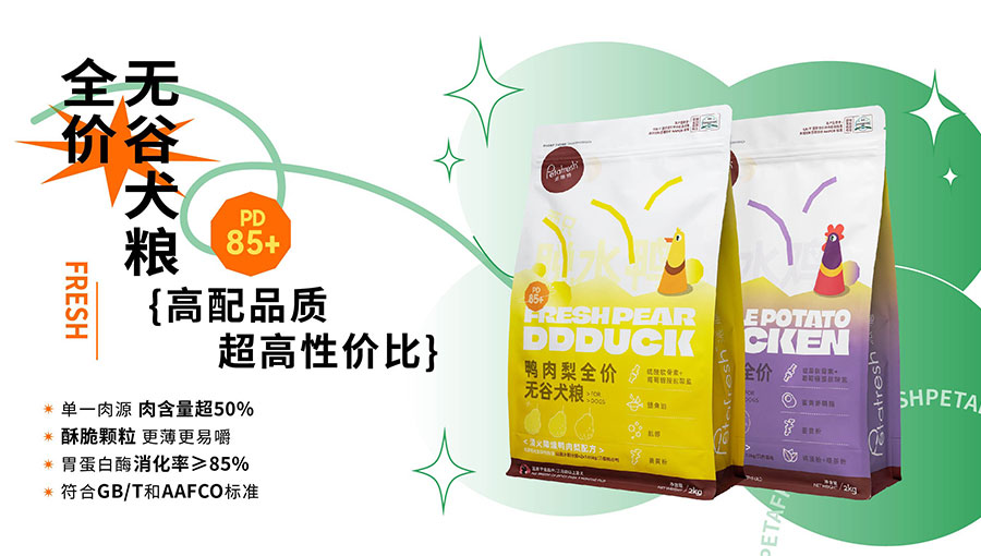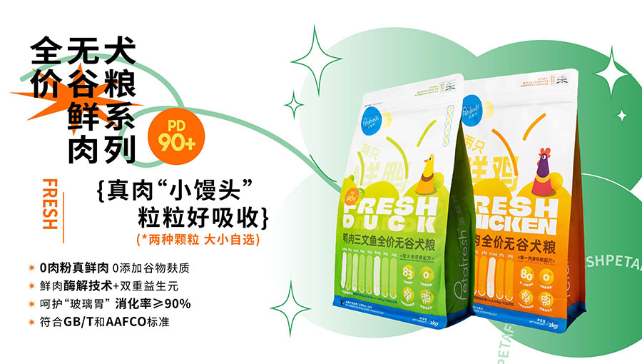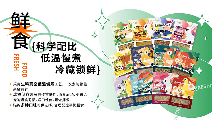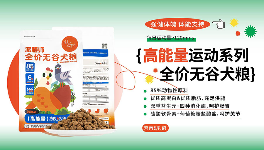目前品牌已擁有鮮食、零食、膨化主糧等產(chǎn)品線,主打“好吸收才是真營養(yǎng)”的PD膨化干糧系列,上線后收獲無數(shù)好口碑,鮮食讓寵物方便食用到原汁原味的新鮮“膳食”,自主研發(fā)的派樂雞、鴨食卷等創(chuàng)意零食也受到消費者的廣泛認可與喜愛。2023年以中國犬只實際運動量為研發(fā)基底推出全新“能量系列”犬糧,讓科學(xué)養(yǎng)寵更簡單。