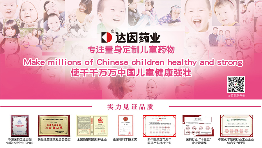 達(dá)因藥業(yè)始終堅(jiān)持“量身定制兒童藥物”和“質(zhì)量源于設(shè)計(jì)”的研發(fā)理念,致力打造一流的兒童專用藥研發(fā)平臺,建成了國內(nèi)首個兒童藥物研發(fā)技術(shù)中心,投資近億元成立專注高端兒童制劑研發(fā)的北京達(dá)因高科兒童藥物研究院,形成北京、山東榮成“二地一體化”的科研機(jī)構(gòu)布局和人才、資源、技術(shù)、產(chǎn)業(yè)化“四位一體”的協(xié)同創(chuàng)新機(jī)制。先后獲批山東省企業(yè)技術(shù)中心、兒童藥物制劑山東省工程研究中心、山東省兒童藥物制劑工程實(shí)驗(yàn)室、山東省新型兒童藥物技術(shù)創(chuàng)新中心、山東省博士后創(chuàng)新實(shí)踐基地和山東省高層次人才工作站等科研創(chuàng)新和人才創(chuàng)新平臺。聚集了包括泰山產(chǎn)業(yè)領(lǐng)軍人才、千人專家、特聘專家等在內(nèi)的一大批專業(yè)技術(shù)人才,搭建了系統(tǒng)的兒童藥物關(guān)鍵技術(shù)平臺,實(shí)現(xiàn)了吸入制劑、口溶膜劑、矯掩味技術(shù)、緩控釋制劑、直腸給藥等技術(shù)創(chuàng)新。5個項(xiàng)目獲國家“十三五”重大新藥創(chuàng)制專項(xiàng)支持,全部按期結(jié)題,超額完成各項(xiàng)技術(shù)指標(biāo)。“特色兒童藥關(guān)鍵技術(shù)體系構(gòu)建及規(guī)模產(chǎn)業(yè)化”項(xiàng)目獲山東省科技進(jìn)步二等獎。