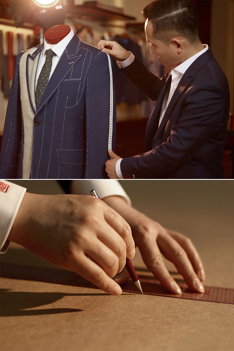 隆慶祥始于1522年,擁有五百年家族制衣史。先祖因制衣工藝精湛、裁作舒適,明朝得賜“袁氏裁作”,清代獲賜“天慶祥瑞”,為感念皇恩,先祖將裁案制成匾額,改字號為“隆慶祥”。隆慶祥將“量身定制,私人裁縫”“1+1”量身定制貼心服務作為核心模式,為客戶提供“一站式”尊貴服務。