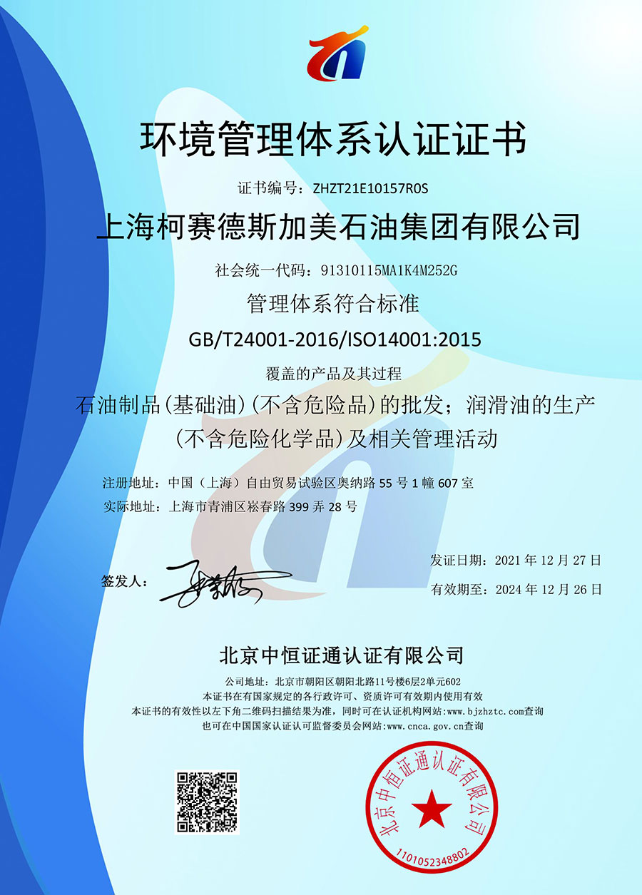 柯賽德斯集團(tuán)公司統(tǒng)一遵循嚴(yán)格的質(zhì)量保證體系,先后通過了武器裝備質(zhì)量管理體系認(rèn)證GJB9001C-2017、ISO/TS16949、IS09001質(zhì)量體系認(rèn)證、1S014001環(huán)境體系認(rèn)證及ISO45001:2018職業(yè)健康安全管理體系認(rèn)證。隨著業(yè)務(wù)領(lǐng)域的不斷擴(kuò)展,目前集團(tuán)公司先后與多家世界能源、化工方面的巨頭建立了產(chǎn)品服務(wù)、供應(yīng)保障、技術(shù)合作、技術(shù)特別支持單位等方面的戰(zhàn)略合作關(guān)系。今天,柯賽德斯集團(tuán)旗下管理著三大潤(rùn)滑油品牌,實(shí)現(xiàn)了經(jīng)營(yíng)上的多元化戰(zhàn)略格局。
