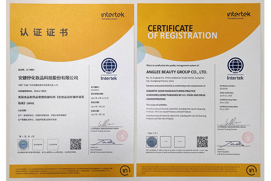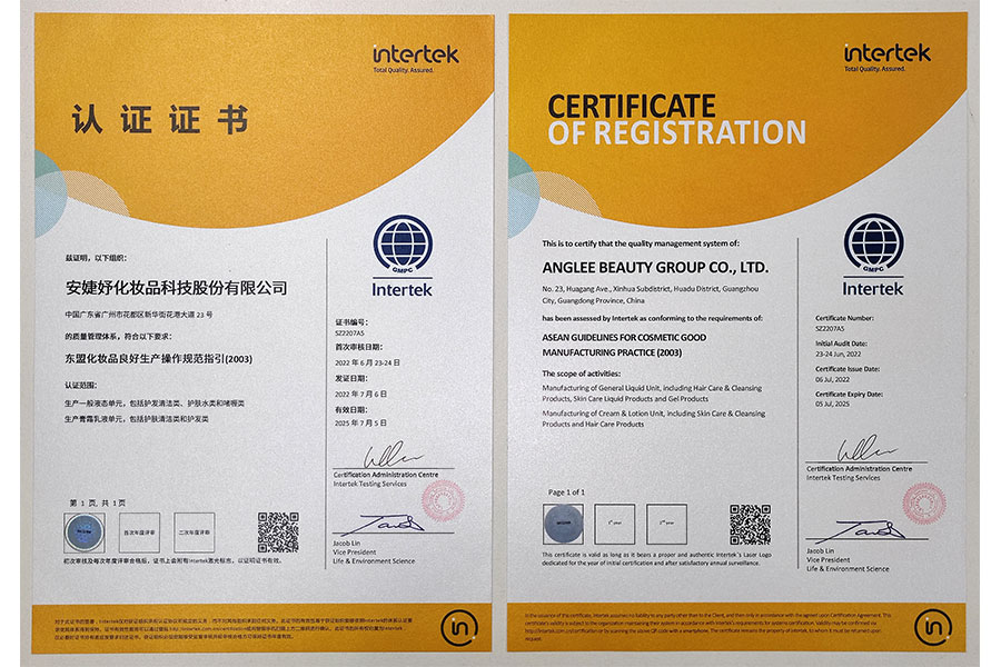 安婕妤2013年首次通過(guò)GMPC東盟認(rèn)證,此后均復(fù)核通過(guò);2019年通過(guò)GMPC美國(guó)認(rèn)證;2019年通過(guò)ISO22716國(guó)際質(zhì)量體系認(rèn)證,擁有以歐盟GMPC標(biāo)準(zhǔn)管理建立的研發(fā)試驗(yàn)中心、質(zhì)量保證中心。