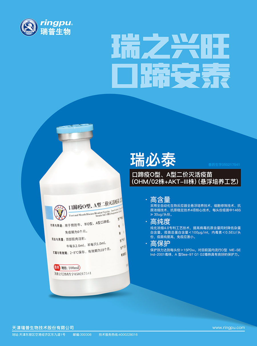 主要產(chǎn)品:瑞普生物疫苗、藥物原料、藥物制劑、飼料添加劑