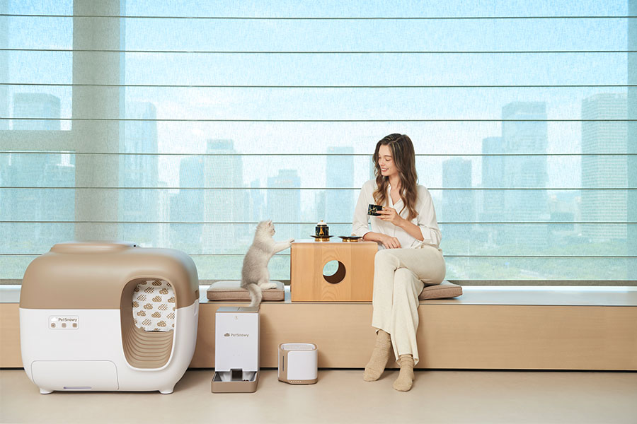 主要產(chǎn)品:PetSnowy糯雪智能全自動貓砂盆、烘干箱、智能飲水機、智能喂食器、空氣凈化器、儲糧桶等多品類寵物智能用品