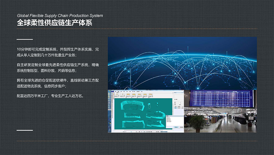 大楊集團(tuán)堅(jiān)持以“打造世界最強(qiáng)服裝定制平臺(tái)”為目標(biāo),重點(diǎn)打造數(shù)字化柔性智能定制工廠,以自主開發(fā)的Ustyylit(優(yōu)思達(dá))服裝定制工業(yè)互聯(lián)網(wǎng)平臺(tái)為依托,以生產(chǎn)線的數(shù)字化改造為手段,實(shí)現(xiàn)多品種、小批量、高品質(zhì)、快速反應(yīng)的定制化生產(chǎn)模式。大楊集團(tuán)現(xiàn)已擁有7家智能化生產(chǎn)工廠、40條智能化生產(chǎn)線。其中,自主研發(fā)的“智能懸掛式高速分揀與存儲(chǔ)系統(tǒng)”榮獲“中國(guó)服裝行業(yè)科技進(jìn)步獎(jiǎng)一等獎(jiǎng)”。同時(shí),“支持深度定制與即時(shí)體驗(yàn)的服裝行業(yè)工業(yè)互聯(lián)網(wǎng)平臺(tái)”項(xiàng)目,入選工信部2020年度新型信息消費(fèi)示范項(xiàng)目,以及2022年工業(yè)互聯(lián)網(wǎng)平臺(tái)創(chuàng)新領(lǐng)航應(yīng)用案例,被授予中國(guó)紡織行業(yè)數(shù)字化轉(zhuǎn)型勞動(dòng)競(jìng)賽先進(jìn)單位。