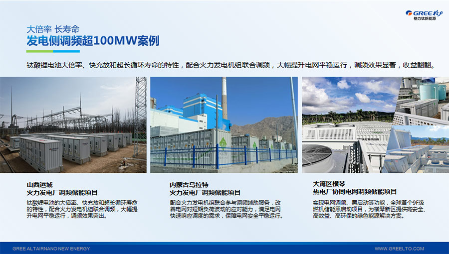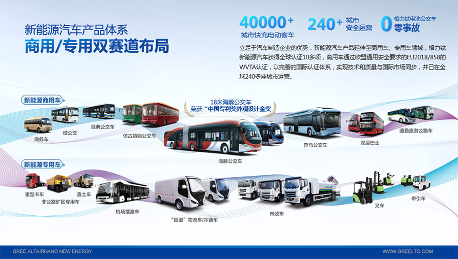 以完善的研發(fā)體系,格力鈦加快技術(shù)創(chuàng)新與產(chǎn)業(yè)升級的步伐。格力鈦研發(fā)的格力鈦電池安全性長期領(lǐng)跑行業(yè),憑借具有高安全、大倍率、快充放、耐寬溫、長壽命等特性,被選為“國家制造業(yè)單項冠軍產(chǎn)品”,廣泛應(yīng)用于新能源汽車以及工商業(yè)園區(qū)、通訊基站、電網(wǎng)調(diào)頻、軌道交通、風(fēng)光消納、船舶岸電、家庭住宅、軍事科研等儲能領(lǐng)域,具有廣闊的市場前景和應(yīng)用價值。目前,格力鈦儲能產(chǎn)品已在丹麥、瑞士、芬蘭等全球30多個國家和地區(qū)使用,新能源汽車產(chǎn)品在北京、杭州、武漢、成都、青島、哈爾濱、包頭、海口等全球240多座城市運營,12年全球零電池事故安全運行。