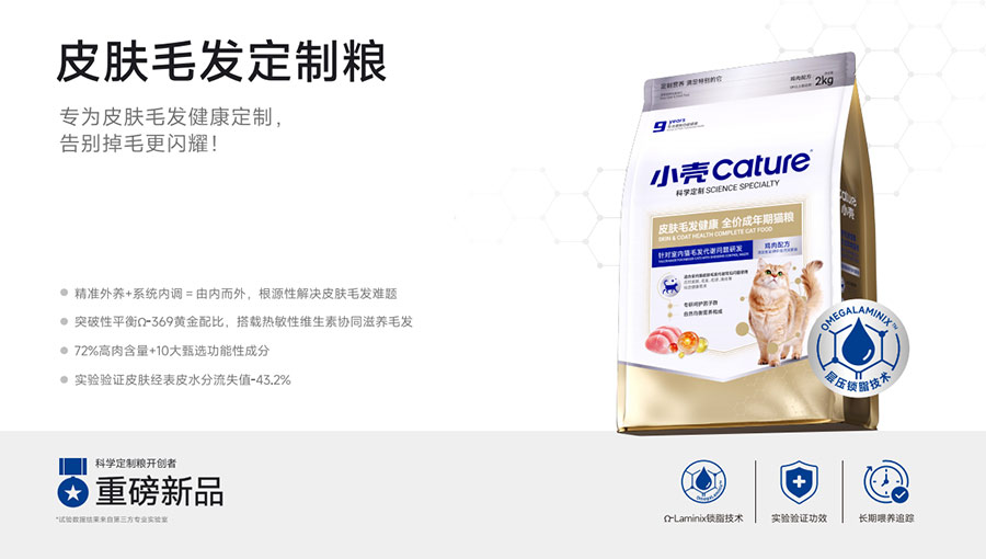 主要產(chǎn)品:小殼絕育定制糧,小殼皮膚毛發(fā)定制糧,小殼免疫呵護(hù)定制糧,小殼功能主食罐系列(小殼排毛主食罐,小殼魚油主食罐),小殼小輕松凍干棒系列(小殼貓草棒pro,小殼魚油棒pro)