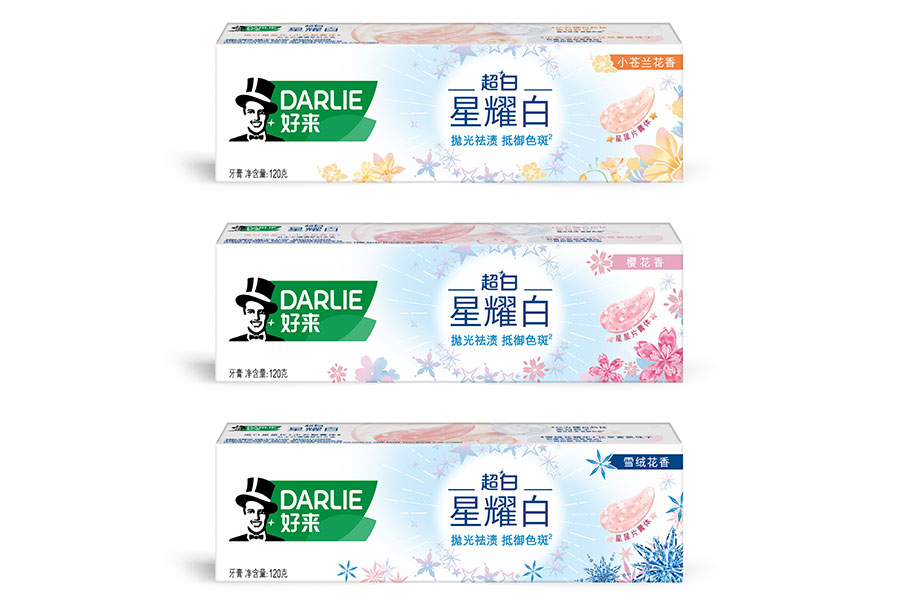 目前DARLIE好來牙膏共有數(shù)十個品種、多種規(guī)格(18g-250g),其中銷往中國大陸市場包括經(jīng)典的雙重薄荷系列、茶倍健系列、超白系列、專研護(hù)齦系列、抗敏感系列、透心爽系列,兒童牙膏系列及新增了白酵素系列和星耀白系列等20個品種,另外還有多個品種同時銷往新加坡、馬來西亞、泰國、中國香港和中國臺灣等市場。