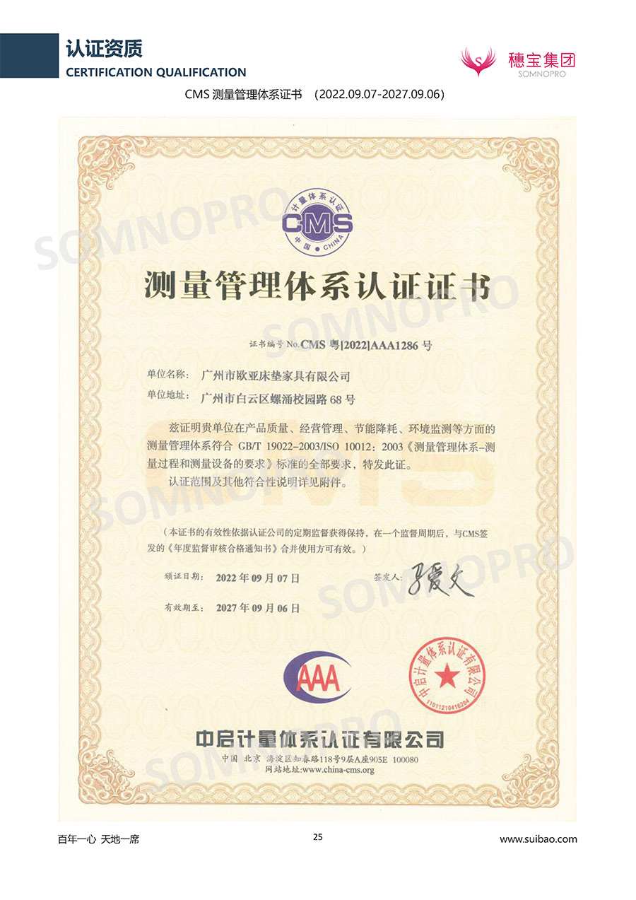 本著高品質(zhì)、高效率、重管理的原則,穗寶已通過(guò)ISO9001質(zhì)量管理體系認(rèn)證證書(shū)、ISO14001環(huán)境管理體系認(rèn)證證書(shū)、ISO45001職業(yè)健康安全管理體系認(rèn)證證書(shū)、中國(guó)環(huán)境標(biāo)志產(chǎn)品認(rèn)證證書(shū)、家居綠色環(huán)保領(lǐng)跑品牌、綠色正品家居品牌、企業(yè)標(biāo)準(zhǔn)“綠色領(lǐng)跑者”證書(shū)、CMS測(cè)量管理體系證書(shū)、CMS測(cè)量管理體系證書(shū)附件、廣東省“守信用重合同”企業(yè)、廣州歐亞-納稅信用A級(jí)納稅人(連續(xù)5年:2018-2022)、2024年中國(guó)500最具價(jià)值品牌,品牌價(jià)值高達(dá)302.89億元、廣東高價(jià)值商標(biāo)品牌(穗寶)、廣東省重點(diǎn)商標(biāo)保護(hù)名錄納入證明、廣州市勞動(dòng)關(guān)系和諧企業(yè)AA級(jí)。穗寶自創(chuàng)立以來(lái),不斷致力于新產(chǎn)品的設(shè)計(jì)與研發(fā),多次在國(guó)內(nèi)家具展會(huì)屢獲獎(jiǎng)項(xiàng),產(chǎn)品暢銷(xiāo)國(guó)內(nèi)外,深受客戶一致好評(píng)。