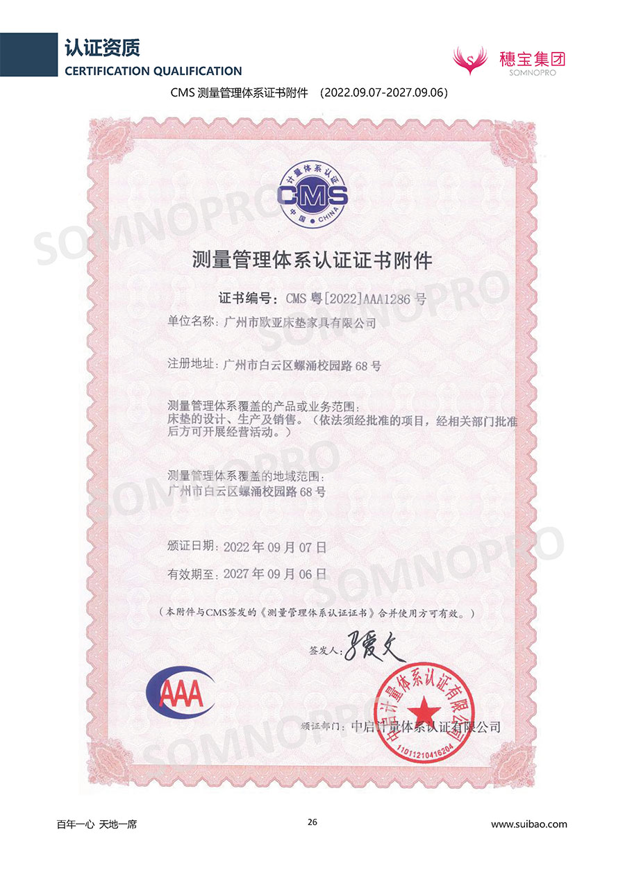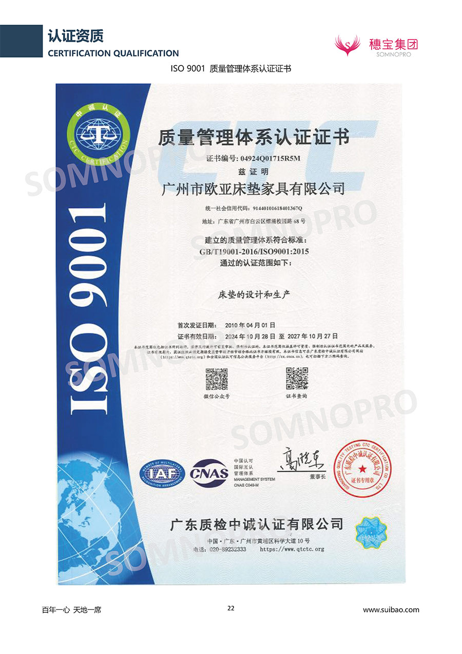 穗寶集團(tuán)遍訪全球,深度整合世界優(yōu)質(zhì)資源,專(zhuān)注睡眠研究,與世界家具材料行業(yè)領(lǐng)導(dǎo)者禮恩派集團(tuán)結(jié)成戰(zhàn)略伙伴,成立睡眠研究中心和彈簧網(wǎng)檢測(cè)中心,引入床墊鋪面耐久性測(cè)試儀,材料拉力測(cè)試儀,床墊撓度曲線測(cè)試儀,為產(chǎn)品注入優(yōu)秀基因;成功研發(fā)推出IFEEL深睡感知系統(tǒng)、X7研發(fā)系統(tǒng),關(guān)注消費(fèi)者每一個(gè)細(xì)微的睡眠需求,致力于以科學(xué)的方式創(chuàng)造優(yōu)異的物理與心理助眠條件,幫助現(xiàn)代人獲得優(yōu)質(zhì)深度睡眠;不斷創(chuàng)新進(jìn)取,軀位步技術(shù)、T-GUARD衡力支承系統(tǒng)等多項(xiàng)成果獲國(guó)內(nèi)國(guó)際專(zhuān)利。