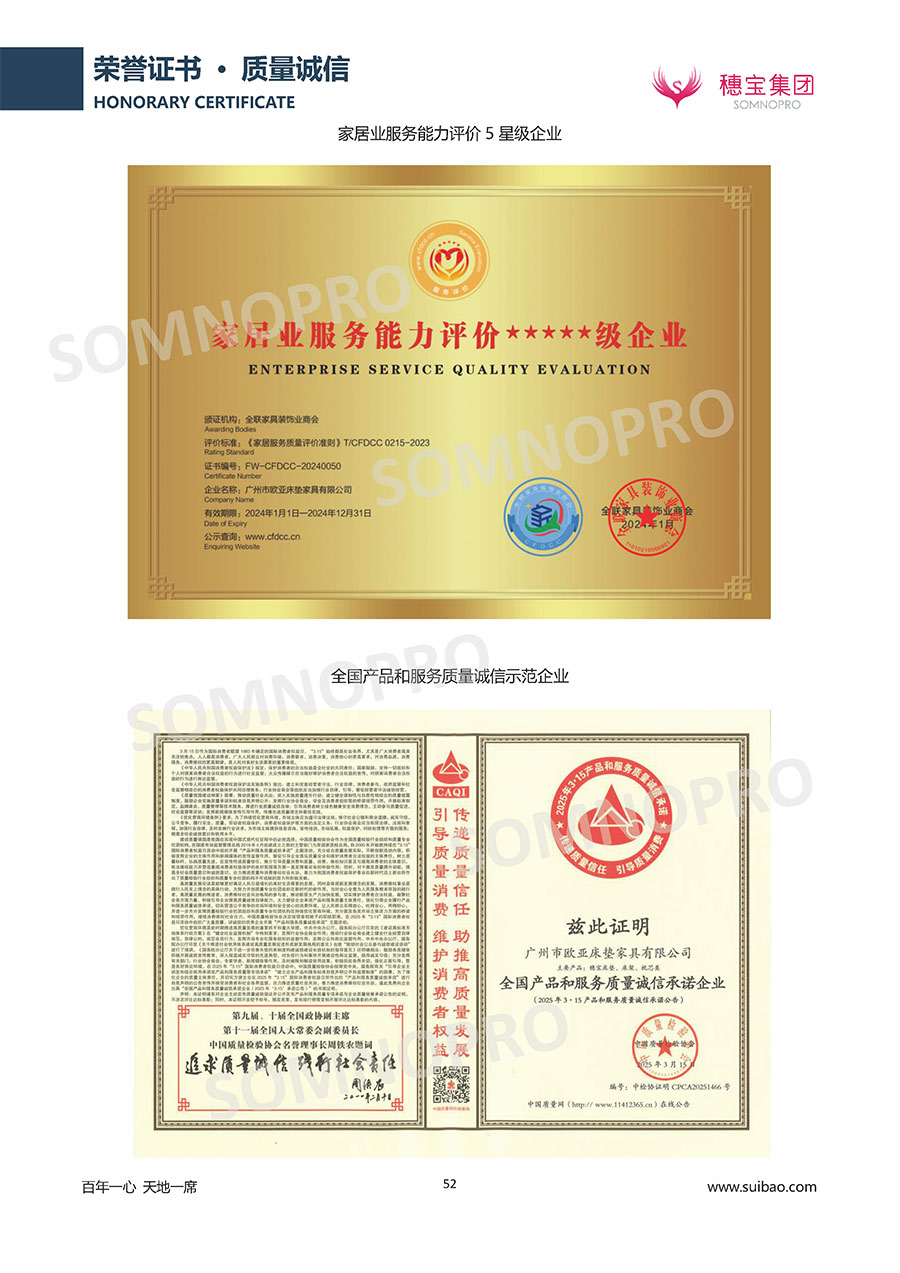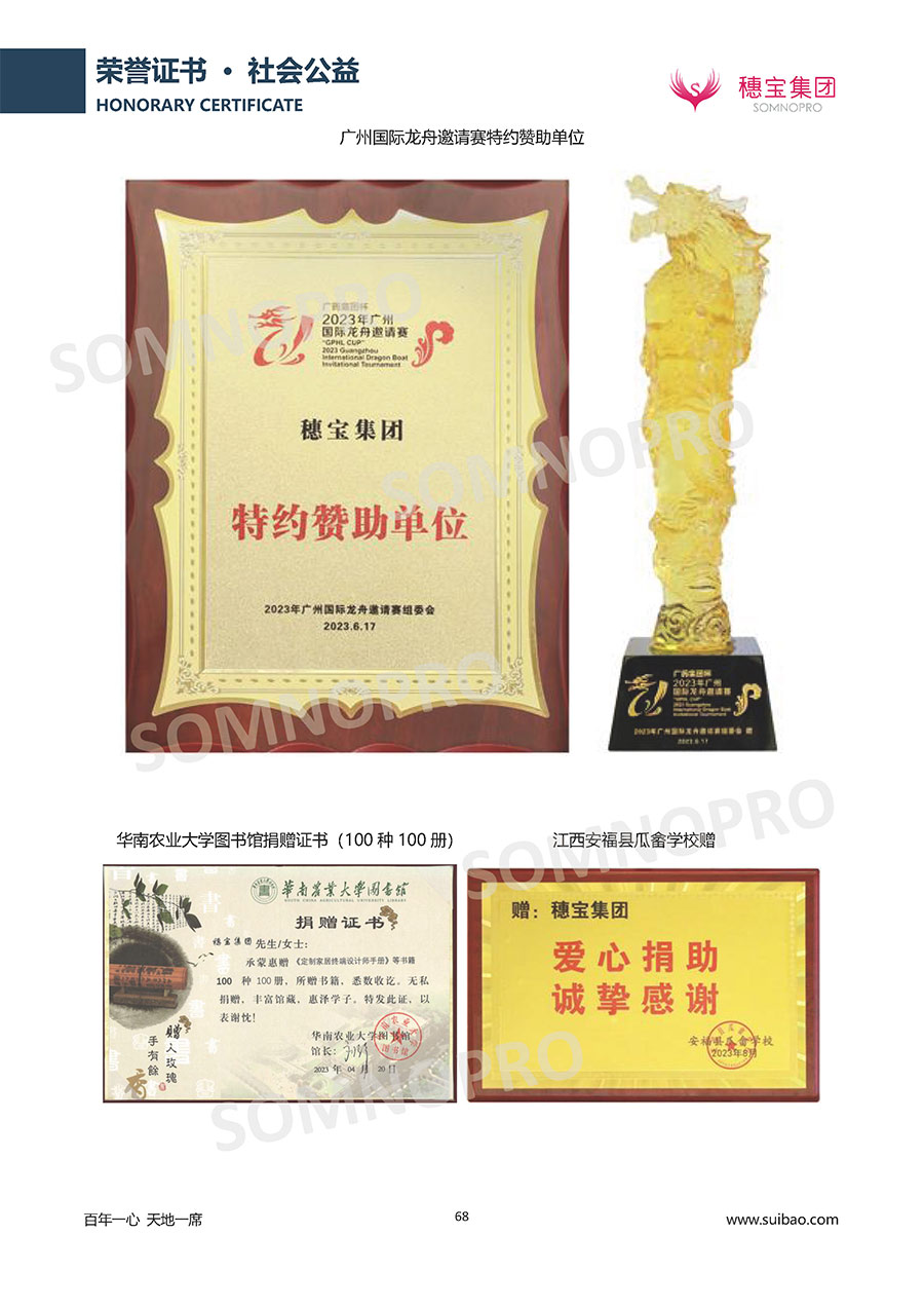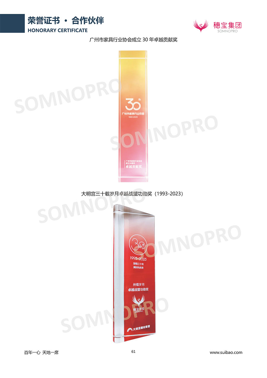 自1971年獨(dú)立研發(fā)生產(chǎn)出專(zhuān)屬?lài)?guó)人的彈簧床墊,穗寶關(guān)于優(yōu)質(zhì)深度睡眠的研究已有半個(gè)世紀(jì)的歷史。穗寶一直專(zhuān)注床墊,專(zhuān)注中國(guó)消費(fèi)者的睡眠研究,針對(duì)中國(guó)人特點(diǎn)進(jìn)行優(yōu)化創(chuàng)新,不斷提升國(guó)人的睡眠體驗(yàn),只為成就每個(gè)晚上8小時(shí)的優(yōu)質(zhì)深度睡眠。憑借不斷革新的研發(fā)科技和深受消費(fèi)者信賴(lài)的產(chǎn)品品質(zhì),穗寶集團(tuán)旗下品牌和產(chǎn)品屢獲國(guó)內(nèi)外大獎(jiǎng),連續(xù)20年榮膺中國(guó)500最具價(jià)值品牌,品牌價(jià)值高達(dá)302.89億元。