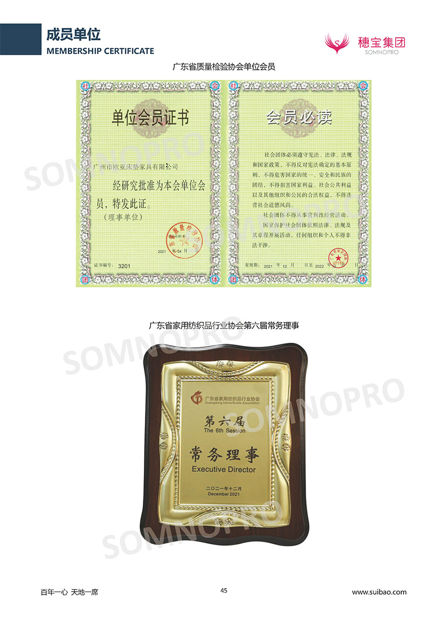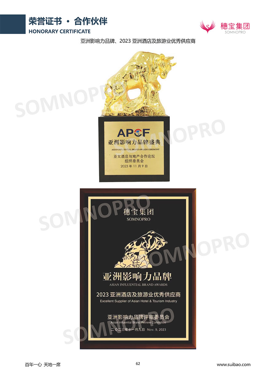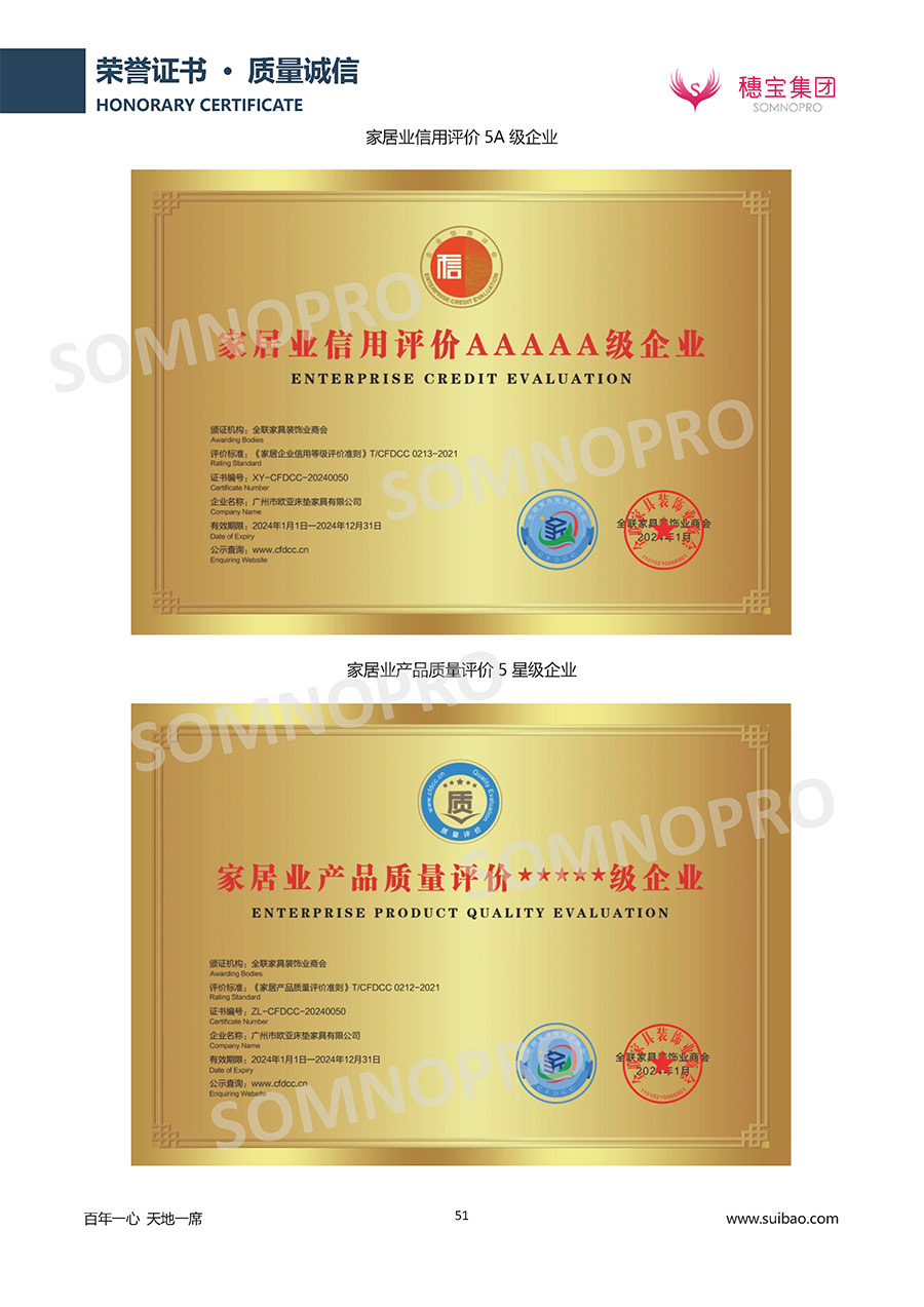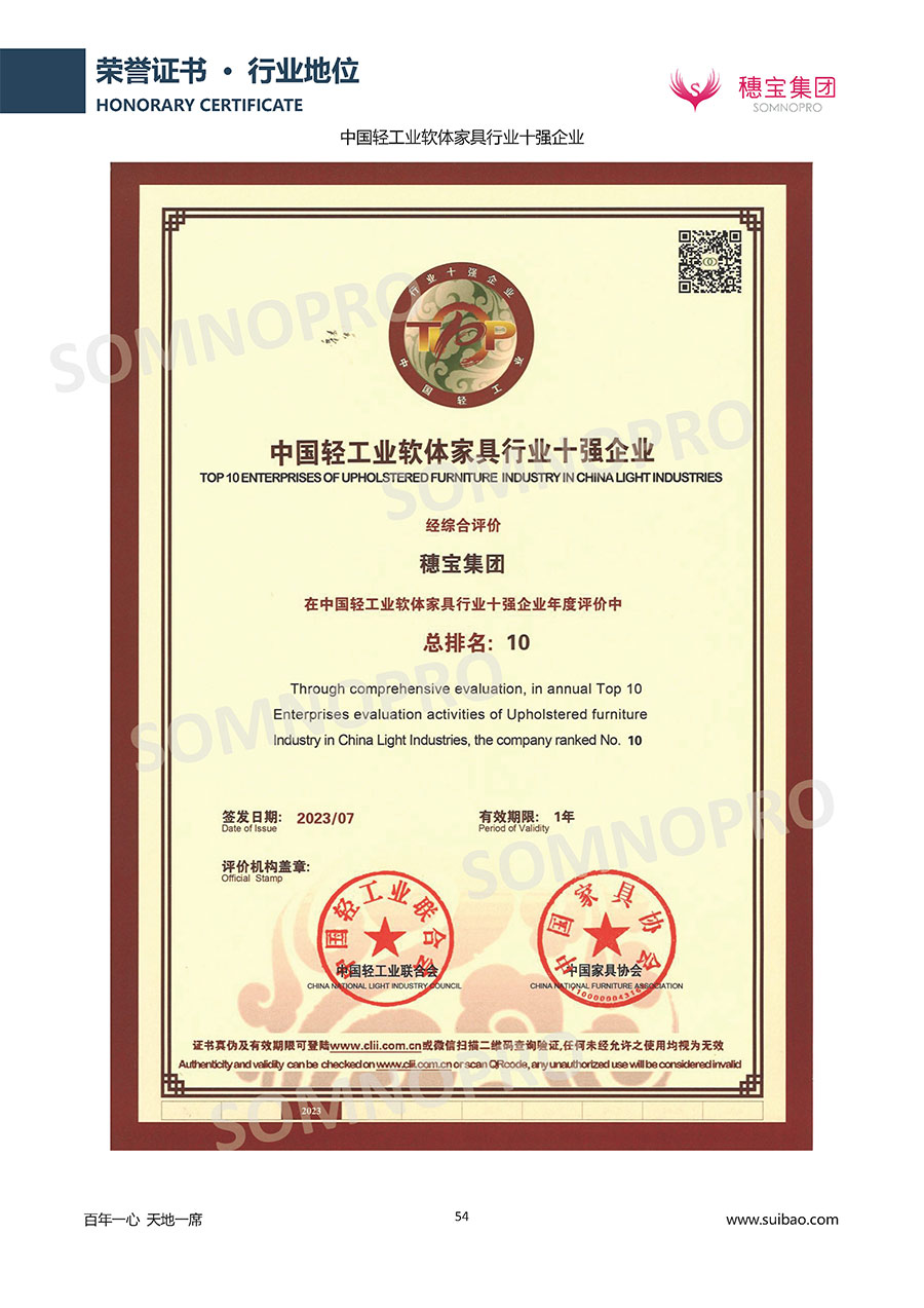 自1971年獨(dú)立研發(fā)生產(chǎn)出專(zhuān)屬?lài)?guó)人的彈簧床墊,穗寶關(guān)于優(yōu)質(zhì)深度睡眠的研究已有半個(gè)世紀(jì)的歷史。穗寶一直專(zhuān)注床墊,專(zhuān)注中國(guó)消費(fèi)者的睡眠研究,針對(duì)中國(guó)人特點(diǎn)進(jìn)行優(yōu)化創(chuàng)新,不斷提升國(guó)人的睡眠體驗(yàn),只為成就每個(gè)晚上8小時(shí)的優(yōu)質(zhì)深度睡眠。憑借不斷革新的研發(fā)科技和深受消費(fèi)者信賴(lài)的產(chǎn)品品質(zhì),穗寶集團(tuán)旗下品牌和產(chǎn)品屢獲國(guó)內(nèi)外大獎(jiǎng),連續(xù)20年榮膺中國(guó)500最具價(jià)值品牌,品牌價(jià)值高達(dá)302.89億元。