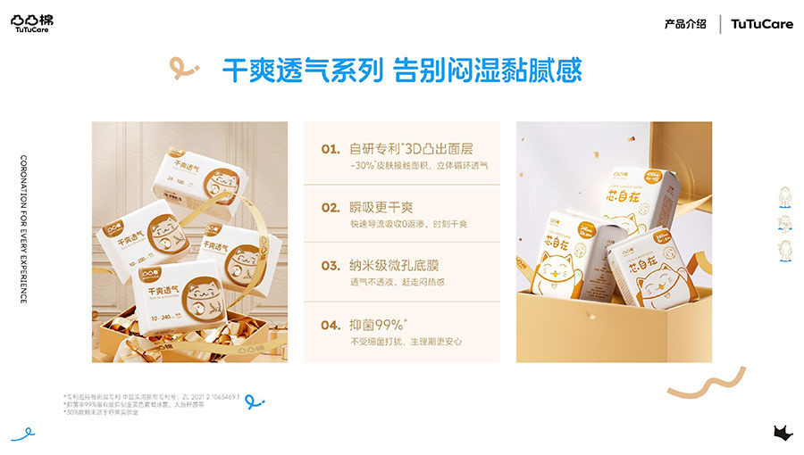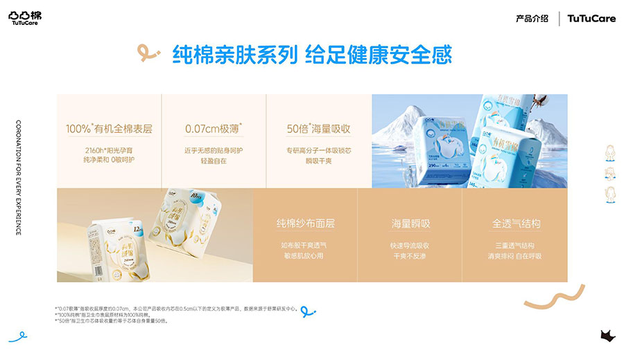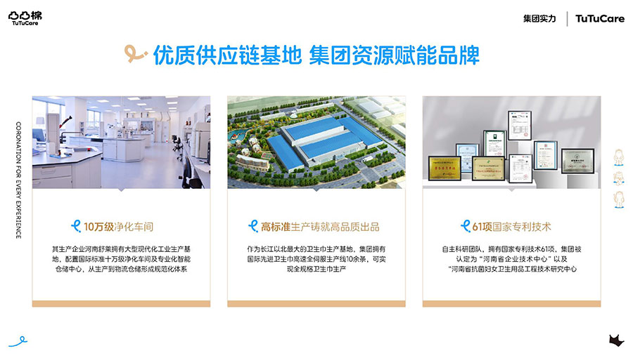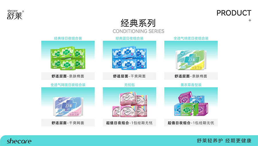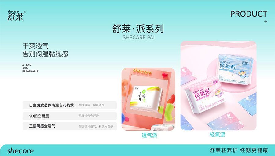 河南舒萊衛(wèi)生用品有限公司旗下?lián)碛惺嫒R、凸凸棉、純也、優(yōu)月季等品牌,產(chǎn)品涵蓋衛(wèi)生巾、安睡褲、護(hù)理液等品類。其中,舒萊品牌:S.H.E.CARE經(jīng)期健康管理體系,從科學(xué)、健康、舒適三大維度全方位呵護(hù)女性經(jīng)期健康。舒萊“輕養(yǎng)護(hù)”以漢方調(diào)養(yǎng)為根基,以科學(xué)抑護(hù)為本色,全方位調(diào)節(jié)女性經(jīng)期健康指數(shù),輕松實(shí)現(xiàn)經(jīng)期護(hù)理;凸凸棉品牌:獨(dú)創(chuàng)A.C.E.CARE品質(zhì)管理體系,以Air Tech干爽透氣、Comfort Tech舒適體感、Ecology Tech安全衛(wèi)生為核心,打造更懂女性的護(hù)理體驗(yàn)。
