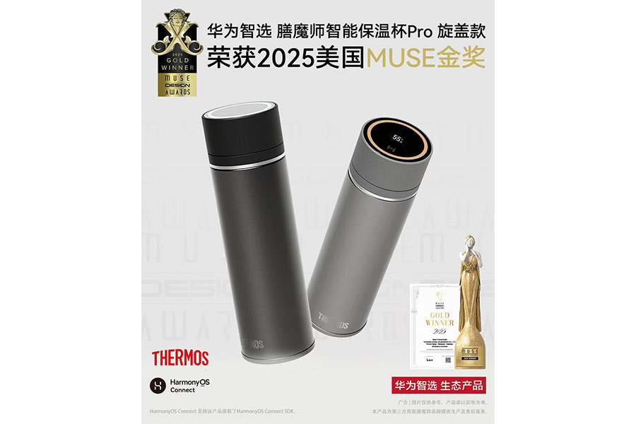 此外,膳魔師結合最新智能科技打造的「華為智選膳魔師智能保溫杯Pro彈蓋款」產品,榮獲2024年紅點獎(Reddot award)和美國MUSE產品設計獎項。而更新迭代的「華為智選 膳魔師智能保溫杯Pro 旋蓋款」,則于2025年,再次斬獲美國MUSE產品設計獎項。