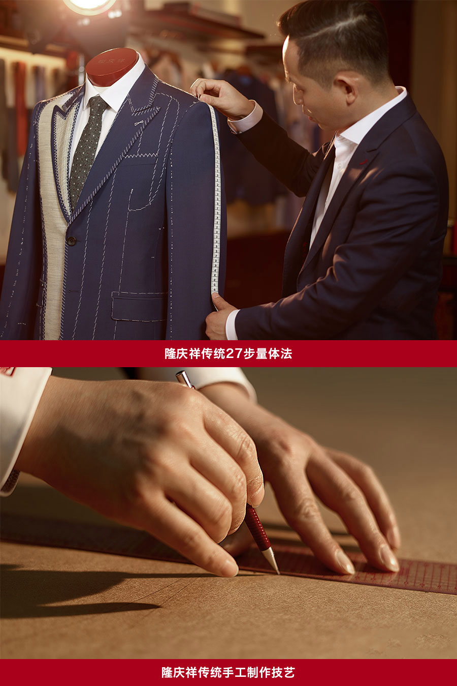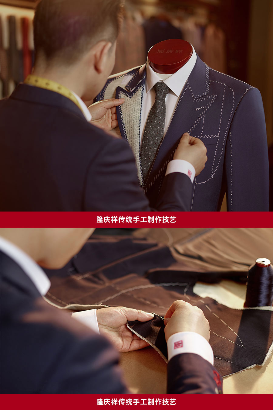 隆慶祥以量身定制為核心特色,提供從面料選擇、款式設(shè)計到工藝優(yōu)化、售后服務(wù)的全程服務(wù),產(chǎn)品均為“單人單版、單版單裁、單裁單做”,以獨一無二的專屬性彰顯尊貴榮耀。每套西裝定面料、定款式、制版、裁剪、制作、試樣、后道整理、取件共八道工序,均采用406道工序,而且大量工序是手工制作。產(chǎn)品均“單人單版、單版單裁、單裁單做”,以獨一無二的專屬性彰顯尊貴榮耀。