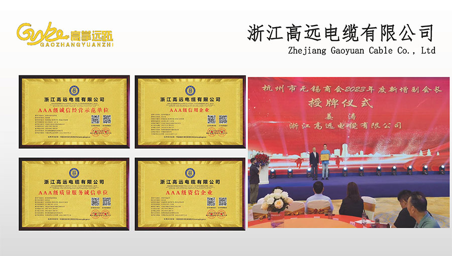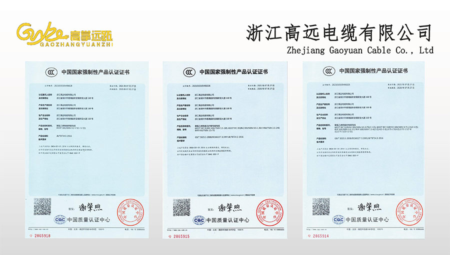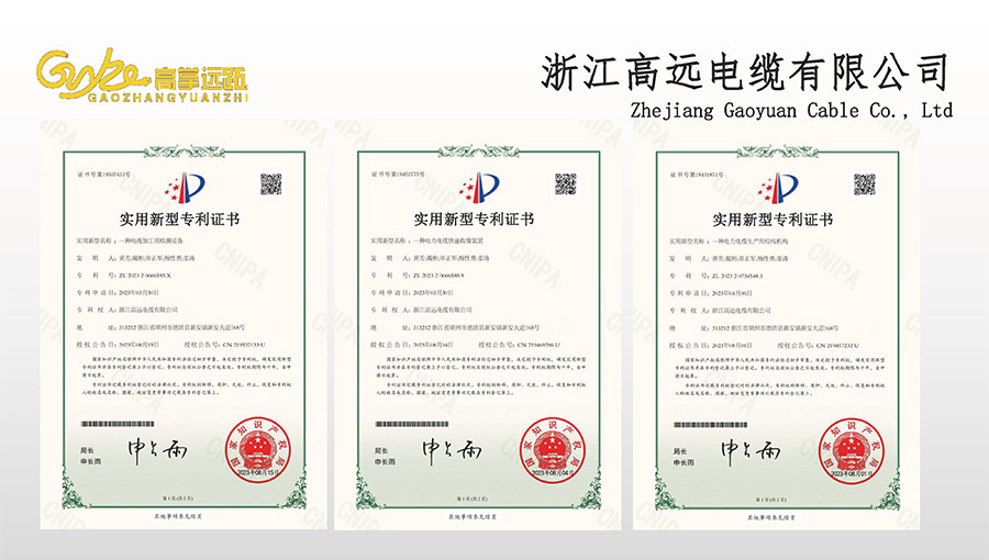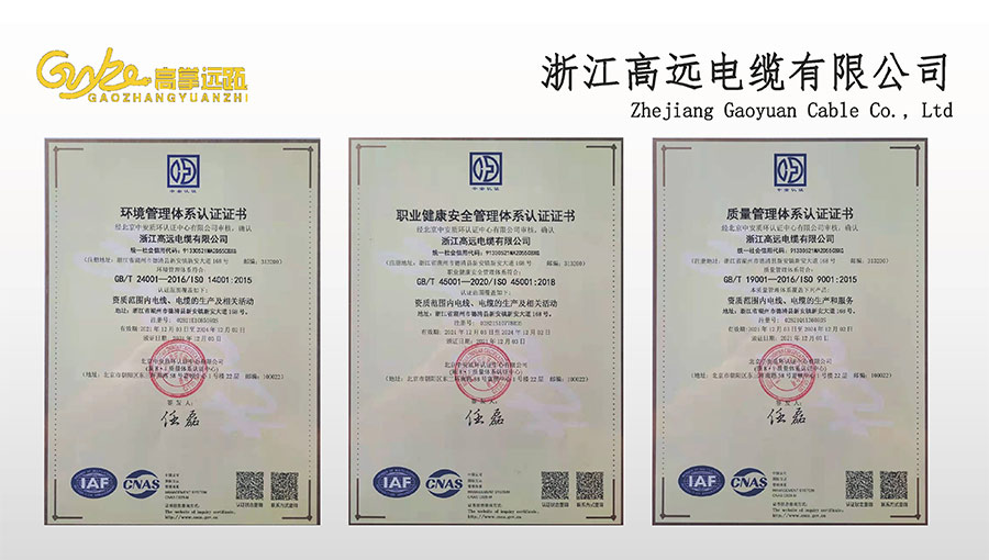 高遠(yuǎn)電纜是浙江省電線電纜重點(diǎn)工業(yè)企業(yè),浙江省專精特新企業(yè)、浙江省科技型企業(yè),浙江省標(biāo)準(zhǔn)化良好行為AAA級(jí)企業(yè);獲得了國(guó)家頒發(fā)的生產(chǎn)許可證,通過(guò)了CCC國(guó)家強(qiáng)制性產(chǎn)品認(rèn)證,ISO9001質(zhì)量體系認(rèn)證,ISO14001環(huán)境體系認(rèn)證,OHSAS18001職業(yè)健康安全管理體系認(rèn)證,PCCC產(chǎn)品認(rèn)證、B1級(jí)燃燒性能授權(quán)書;榮獲浙江省著名商標(biāo),浙江省重合同守信譽(yù)企業(yè),浙江省優(yōu)質(zhì)產(chǎn)品,市級(jí)研究開(kāi)發(fā)中心,清潔工廠,綠色工廠等國(guó)家、省、市授權(quán)的榮譽(yù)稱號(hào),取得了多項(xiàng)發(fā)明專利、實(shí)用型專利。