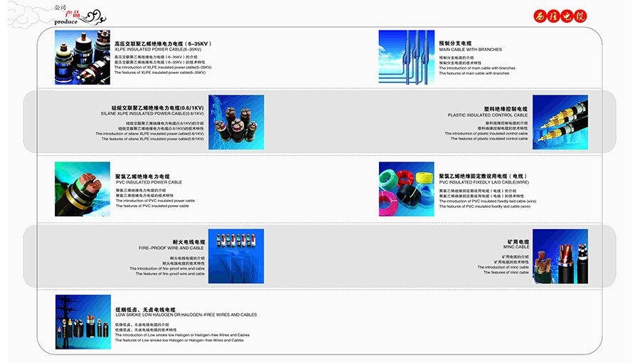 主要產(chǎn)品:“西隆線纜”品牌高低壓電力電纜、架空絕緣導(dǎo)線、架空裸導(dǎo)線、民用電線、戶外耐候線、控制電纜、橡套電纜、礦用阻燃電纜、硅橡膠電纜、計算機(jī)電纜、光伏專用電纜、鋁合金電力電纜、氟塑料電纜等產(chǎn)品
