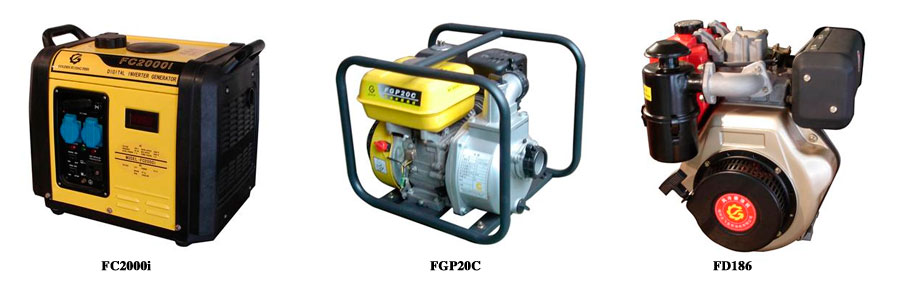 公司主要產(chǎn)品有:一、水冷式:R165、R170、R170B、R175、R175A、R176、R178、R180A、R180、R185A、R185、R190、R192、ZSl95、ZSll00、ZSlllO、ZSlll5、ZSll25。有預(yù)燃、渦流、一滾一滑、雙滾、蒸發(fā)、冷凝、電啟動等二十幾種基本型單缸系列柴油機(jī)及一百多種變形產(chǎn)品。二、風(fēng)冷式:1、F系列單缸立式風(fēng)冷柴油機(jī)FDl70、FDl78、FDl86。2、變頻發(fā)電機(jī)組。3、臥式風(fēng)冷柴油機(jī):160F、165FA、165F、170F、175F。4、F系列單缸頂置式(OHV)風(fēng)冷汽油機(jī)FGl52、FGl60、FG200、FG240、FG270、FG340、FG390。5、F系列柴油發(fā)電機(jī)組(輸出功率1.5KW-5.5KW)。6、F系列汽油發(fā)電機(jī)組(輸出功率0.85KW-5.5KW)。7、F系列靜音發(fā)電機(jī)組(輸出功率2.8KW-5.5KW)。8、F系列單缸二沖程便攜式汽油發(fā)電機(jī)組(輸出功率0.5KW-0.8KW)。9、F系列柴油、汽油水泵機(jī)組(1.5、2、3、4泵組)。10、F系列柴油、汽油高壓泵組(1.5、2泵組)。11、F系列柴油、汽油高壓清洗機(jī)。三、發(fā)電設(shè)備:8KW-1000KW系列發(fā)電設(shè)備機(jī)組等。