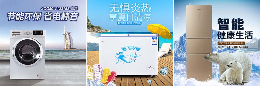 主要產(chǎn)品:新飛牌冰箱、冰柜、空調(diào)、洗衣機(jī)、酒柜