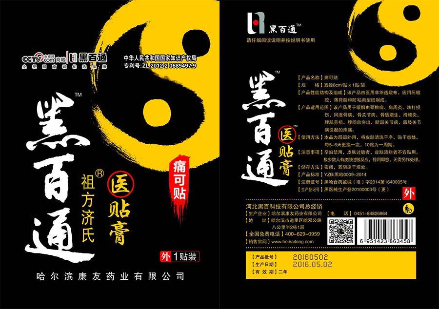 黑百通醫(yī)貼膏是哈爾濱康友藥業(yè)鼎力打造的一款傳統(tǒng)黑膏藥官方名字叫“痛可貼”