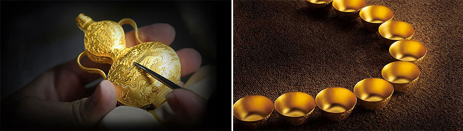 國金黃金自涉足藝術(shù)黃金領(lǐng)域之初就努力踐行“非凡技藝、完美品質(zhì)”的產(chǎn)品理念,以客戶體驗為中心圍繞傳承和使用理念設(shè)計和策劃產(chǎn)品。逐步建成了以傳家系列、平安系列、婚慶系列、生肖系列及國金定制五大系列組成的產(chǎn)品細分體系。其中,從文化層面包含了酒文化、茶文化、福文化、佛文化、喜文化、生肖文化、節(jié)慶文化、紀念文化等題材;從功能上又包含了食器、酒器、茶器、福器、玩器、合器等實用器型,能滿足各類客戶的多元化需求。此外,擁有眾多專業(yè)設(shè)計人才的國金定制顧問團隊,又能為個人客戶和企業(yè)客戶提供一對一的專業(yè)定制服務,幫助每一位客戶實現(xiàn)黃金夢想,造就品質(zhì)生活。