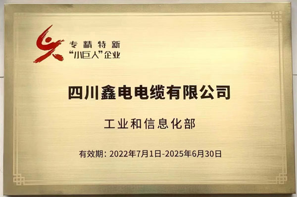 今年九月,工信部公示了第四批國家級專精特新“小巨人”企業(yè)名單,鑫電電纜在電線電纜領域多年深耕,成功入選名單。這是對公司創(chuàng)新能力、技術水平、行業(yè)地位、質量效益等方面及綜合實力的認可,將持續(xù)提升公司品牌知名度,增強公司競爭力。