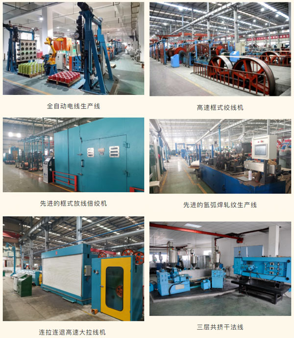 此外,公司車間生產設備也在不斷升級改造,擁有先進的全自動電線生產線(擠塑、成圈、包裝、碼垛一體機)、三層共擠干法交聯(lián)線(配置德國SIKORA在線測偏儀),也具有連拉連退高速大拉線機、先進的框式放線倍絞機、高速框式絞線機、先進的氬弧焊軋紋生產線等自動化設備,提高了公司裝備智能化、自動化程度,為企業(yè)數(shù)字化改造奠定基礎。