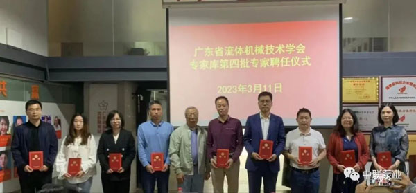 2023年3月11日,中聯(lián)泵業(yè)董事長(zhǎng)、湖南省五金機(jī)電商會(huì)會(huì)長(zhǎng)潘世群先生被聘任為廣東省流體機(jī)械技術(shù)學(xué)會(huì)專家?guī)斓谒呐夹g(shù)專家。