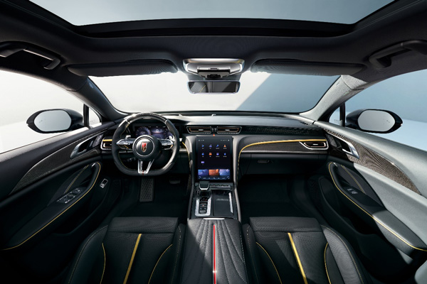 在內飾設計方面,紅旗H6以“環(huán)懸科技”概念,采用流動輕盈的整體架構,為駕乘者帶來尊貴體驗。超大中控豎屏、“金盞黃+黑色”內飾、“真皮+碳纖維”方向盤、運動座椅、全液晶儀表盤、精致簡潔的門板和飾條設計,在傳承家族“中軸式布局”的基礎上,呈現出兼具豪華尊享、智慧科技、激情動感的風尚氣息。