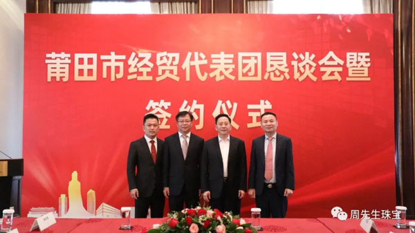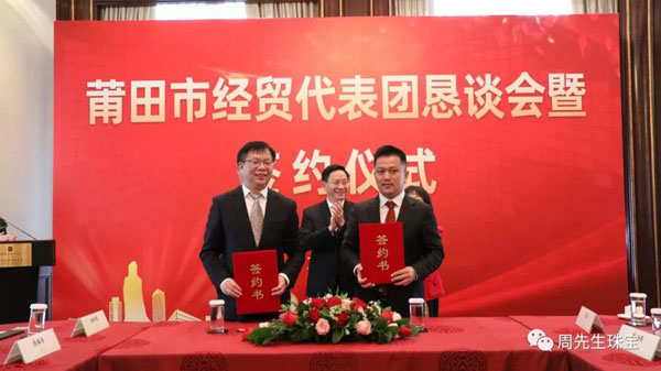 懇談會(huì)期間,莆田經(jīng)貿(mào)代表團(tuán)與眾多莆仙籍企業(yè)家面對(duì)面交流,就共同推進(jìn)項(xiàng)目合作達(dá)成諸多意向,舉行了簽約儀式。香港周先生珠寶金行國(guó)際集團(tuán)有限公司作為應(yīng)邀出席的企業(yè)之一,在眾多領(lǐng)導(dǎo)的見(jiàn)證下簽署“香港周先生珠寶金行國(guó)際集團(tuán)有限公司供應(yīng)鏈平臺(tái)”項(xiàng)目合作協(xié)議 。
