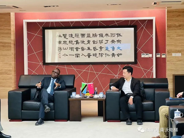 2023年 3月6 日,坦桑尼亞駐華大使H. E. Mbelwa Kairuki(H ·E ·姆貝爾瓦 ·凱魯基)先生一行訪問英沃電梯有限公司,董事長張力對(duì)凱魯基大使來訪表示熱烈歡迎,并介紹了英沃電梯發(fā)展的最新情況,雙方就深化合作進(jìn)行了交流探討。
