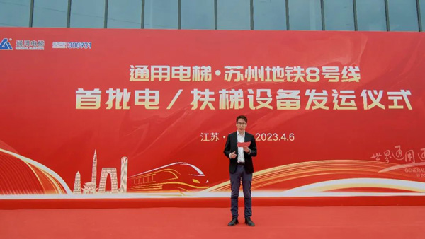 通用電梯蘇州地鐵8號線項目各執(zhí)行部門均到場參加了發(fā)運儀式,執(zhí)行總裁徐斌先生主持了發(fā)運儀式并做致辭。