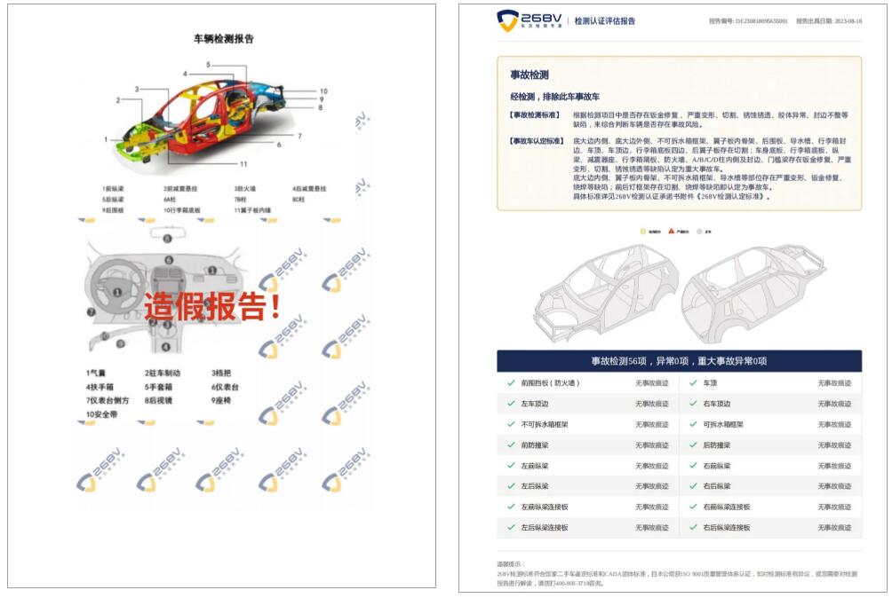 首先,268V官方提供的檢測報告,是支持“防偽溯源查詢”,每份報告均可驗證真?zhèn)?。消費者在買車時,如果檢測報告是268V的,直接掃描防偽查詢二維碼,對報告進行驗證,假報告第一時間不攻自破;
