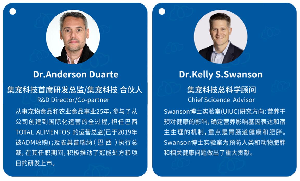 Golden Prince®處方食品能夠落地中國(guó)生產(chǎn)離不開他們的鼎力相助,集寵國(guó)際董事長(zhǎng)王云飛先生隆重介紹集寵的硬核專家組,由Dr.Anderson領(lǐng)導(dǎo)的優(yōu)秀團(tuán)隊(duì),他擁有幾十年的國(guó)際研發(fā)及生產(chǎn)經(jīng)驗(yàn)。還有美國(guó)伊利諾伊大學(xué)(UIUC)Dr.Kelly S.Swanson 領(lǐng)導(dǎo)的動(dòng)物營(yíng)養(yǎng)學(xué)院的基礎(chǔ)研究支持。
