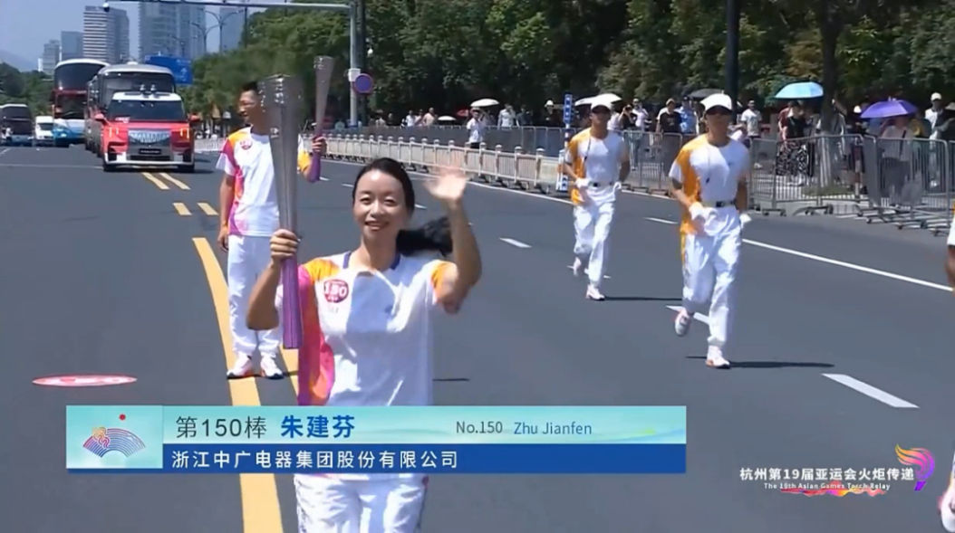 近日,杭州亞運會火炬?zhèn)鬟f正式啟動。浙江中廣電器集團股份有限公司黨委書記、副總裁朱建芬,作為杭州亞運會第150棒火炬手,參加溫州站的接力傳跑。