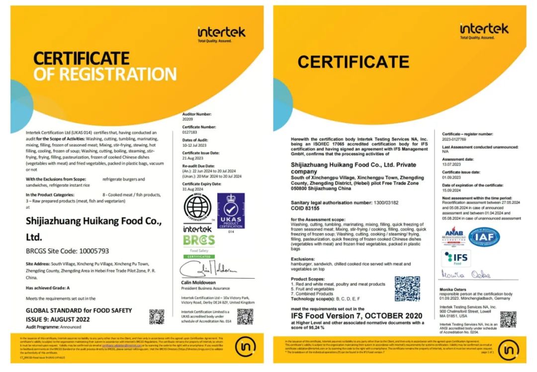 2023年8月,石家莊市惠康食品有限公司再次通過了歐洲BRC和IFS雙認(rèn)證年審。又一次驗證了惠康食品一直以來對食品安全和質(zhì)量的高標(biāo)準(zhǔn)、嚴(yán)要求,不僅說明了惠康食品擁有比肩一線國際大牌同等的實力,還說明了其品質(zhì)安全也一直保持著國際水準(zhǔn),能給予消費者足夠的安全感。