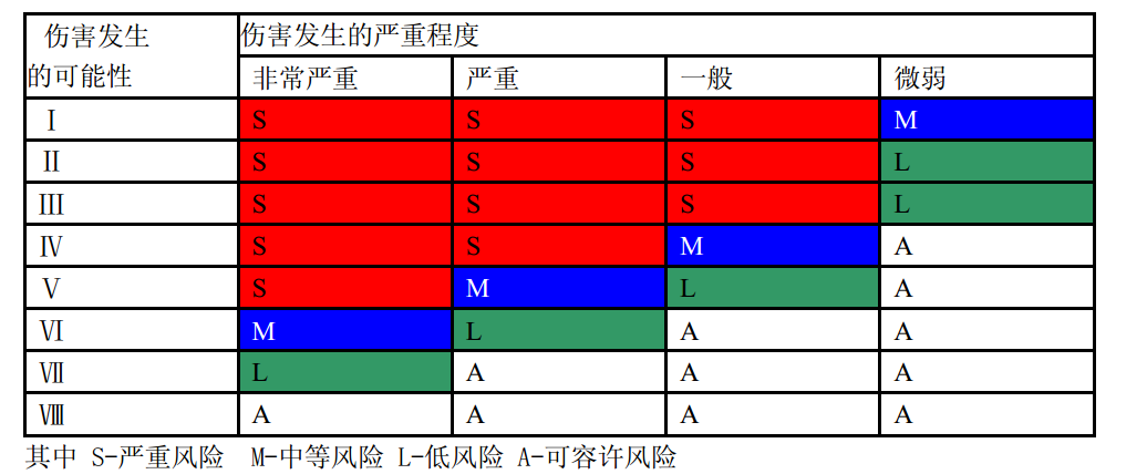 酚類化合物作為一類有害物質(zhì),其限量要求國內(nèi)外目前均沒有明確規(guī)定,參考我國國家標(biāo)準GB/T 18885-2020《生態(tài)紡織品技術(shù)要求》和歐盟生態(tài)紡織品標(biāo)準OekoTex Standard 100中的要求,分產(chǎn)品類別設(shè)定酚類化合物的限量要求為:嬰幼兒用品≤0.5mg/kg,直接接觸皮膚產(chǎn)品≤3mg/kg,非直接接觸皮膚產(chǎn)品≤3mg/kg,裝飾用品≤3mg/kg。據(jù)此要求開展風(fēng)險評估,并運用GB/T22760-2008《消費品安全風(fēng)險評估通則》中設(shè)定的經(jīng)典評估方法從發(fā)生傷害的嚴重性及其發(fā)生的總體可能性進行綜合評價。酚類化合物超標(biāo)可導(dǎo)致對神經(jīng)系統(tǒng)損害大,也能引起頭暈、貧血及各種神經(jīng)系統(tǒng)病癥,對泌尿、消化系統(tǒng)均有毒害作用,危害程度評定為嚴重。風(fēng)險發(fā)生的可能性為Ⅵ級,即會發(fā)生少數(shù)傷害事件,但可能性極小。根據(jù)圖1,綜合評定風(fēng)險等級為L-低風(fēng)險。