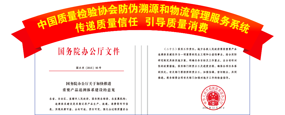 中國質(zhì)量檢驗(yàn)協(xié)會防偽溯源物流管理服務(wù)部作為中國質(zhì)量檢驗(yàn)協(xié)會防偽溯源和物流管理服務(wù)系統(tǒng)的工作機(jī)構(gòu),將切實(shí)為廣大企業(yè)提供更多的運(yùn)用信息和切實(shí)完善的應(yīng)用方案,支持企業(yè)實(shí)現(xiàn)產(chǎn)品來源可查、去向可追、責(zé)任可究、高效管用的質(zhì)量誠信驗(yàn)證、產(chǎn)品防偽與溯源和物流管理及大數(shù)據(jù)、物聯(lián)網(wǎng)先進(jìn)理念綜合運(yùn)用體系建設(shè),助推名優(yōu)產(chǎn)品贏得消費(fèi)者(用戶)更多的質(zhì)量安全消費(fèi)信任,助力供給側(cè)結(jié)構(gòu)性改革,提高供給質(zhì)量,推動中國經(jīng)濟(jì)發(fā)展進(jìn)入質(zhì)量時代,建設(shè)質(zhì)量強(qiáng)國。