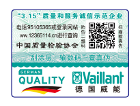 【防偽合格證 • 售后服務(wù)卡一體化標(biāo)識】采用專用紙型制作,將防偽可變信息與產(chǎn)品售后服務(wù)信息統(tǒng)一制作在售后服務(wù)卡上,既省去了貼標(biāo)的工序環(huán)節(jié),又切實(shí)提高了生產(chǎn)效率,在有效解決企業(yè)防偽應(yīng)用的基礎(chǔ)上,大大節(jié)省企業(yè)的生產(chǎn)成本,同時,以第三方質(zhì)量專業(yè)機(jī)構(gòu)和質(zhì)量檢驗(yàn)行業(yè)組織的名義向消費(fèi)者傳遞對企業(yè)產(chǎn)品的信任,加大消費(fèi)者對企業(yè)品牌的消費(fèi)信任度。
