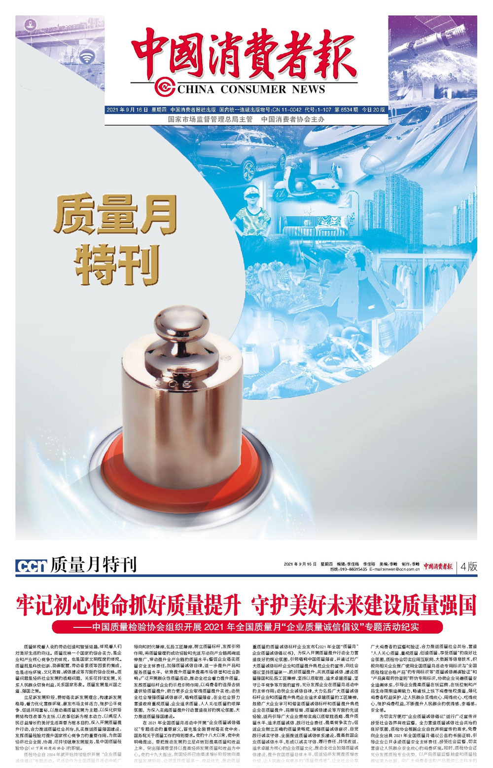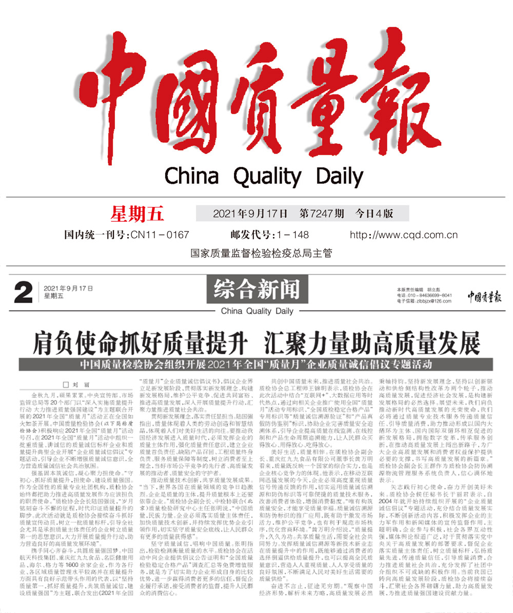 中國質(zhì)量報:肩負(fù)使命抓好質(zhì)量提升匯聚力量助高質(zhì)量發(fā)展——中國質(zhì)量檢驗協(xié)會組織開展2021年全國“質(zhì)量月”企業(yè)質(zhì)量誠信倡議專題活動